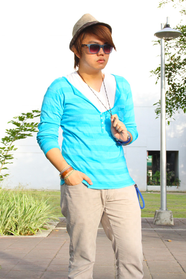 Fedora hat, leather bracelets, necklace and wayfarer from SM Accessories, Long sleeve top from Old Navy, Mandals from Wade, Watch[…]
